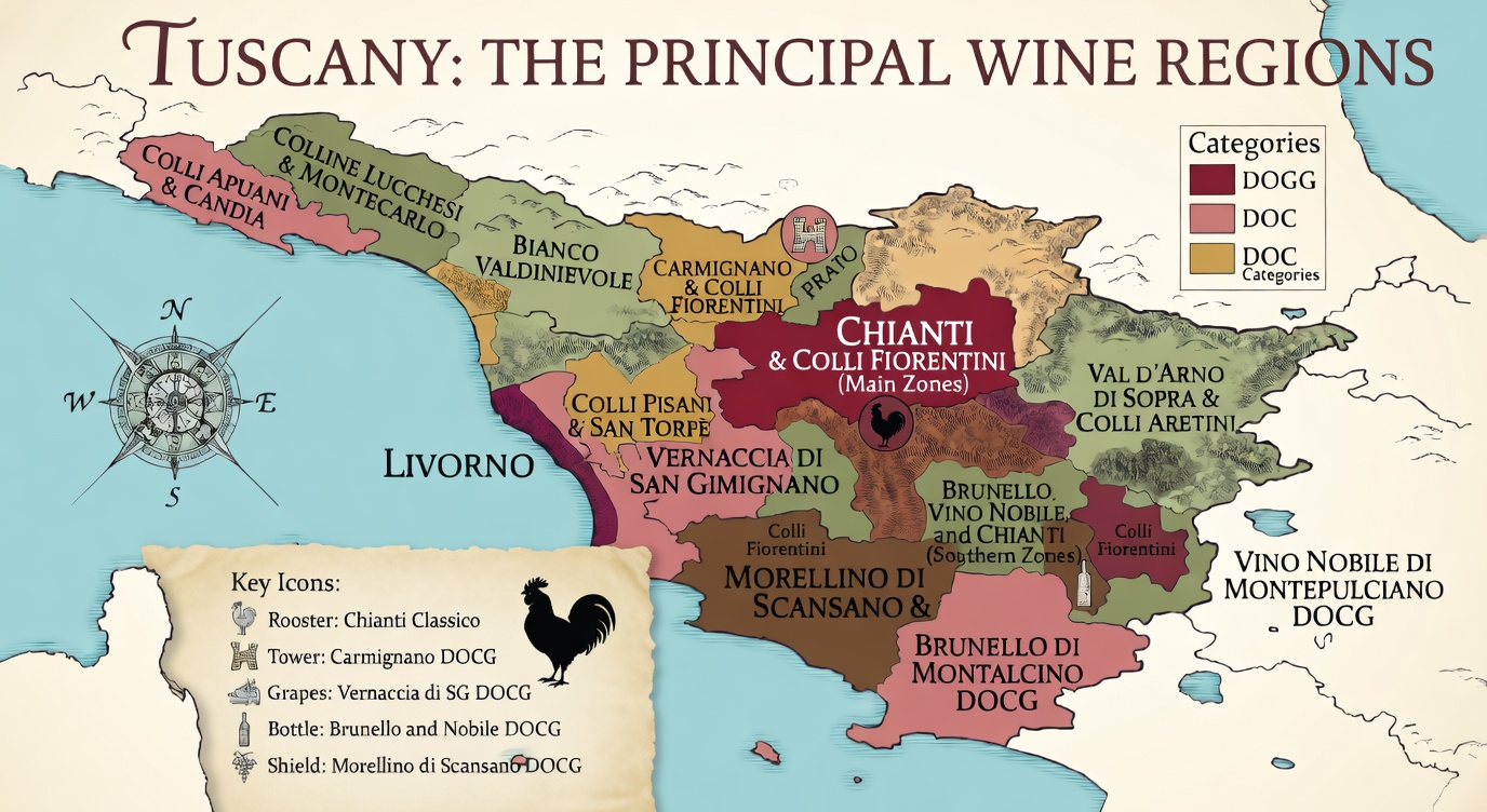 | Chianti | Vine terraces, olive groves, stone farmhouses | Wine touring, Florence & Siena day trips, first visits | Greve in Chianti | Highest villa density; best all-round base |